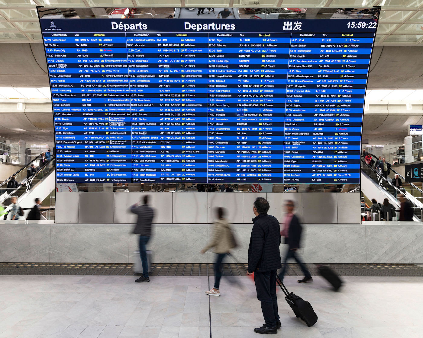 Ein Blick auf die Anzeigentafel im Terminal 2E in Paris Charles de Gaulle. Bild: Groupe ADP