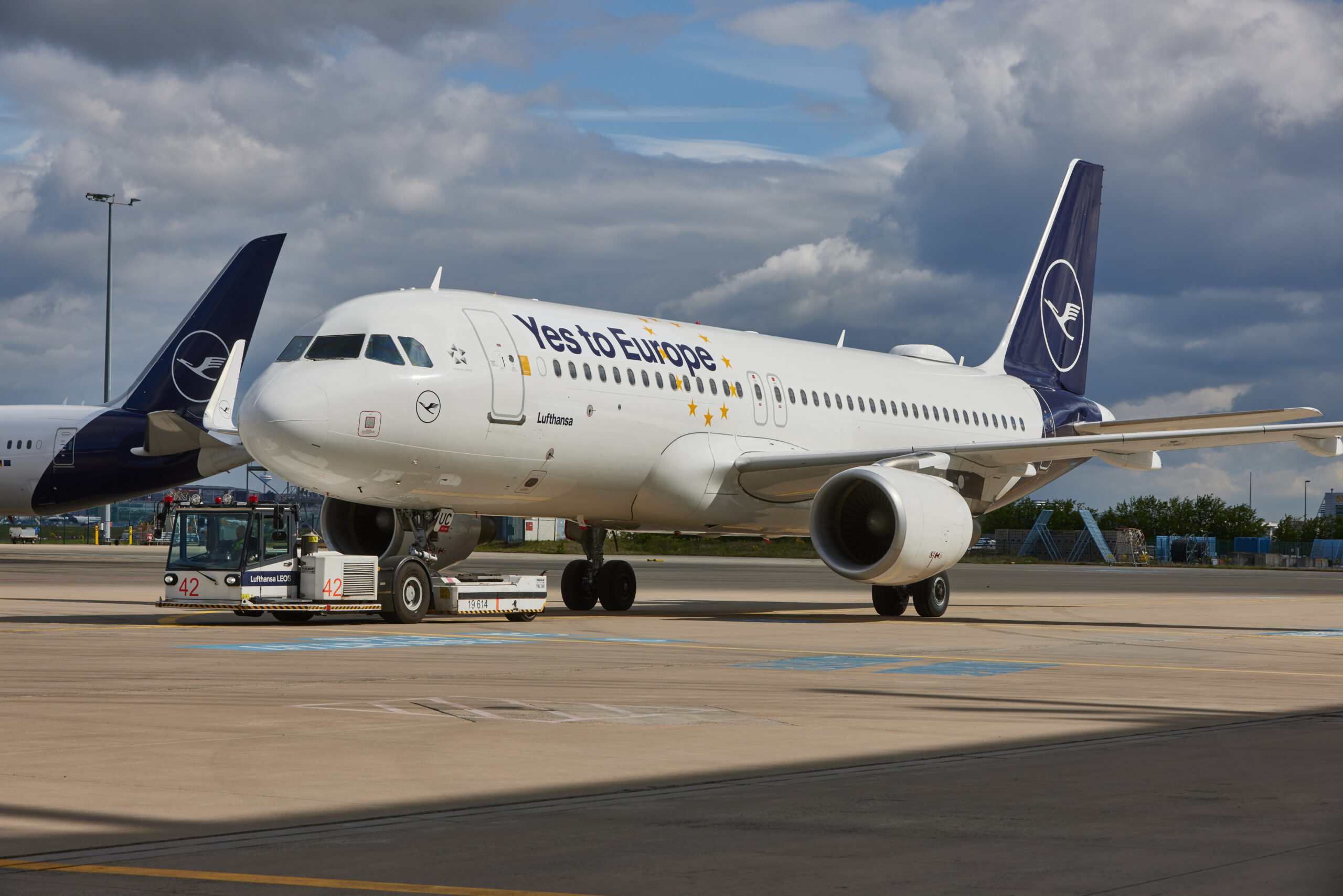 Lufthansa hatte ihrer A320 mit der Kennung D-AIUC zur Europawahl die Sticker „Yes to Europe“ verpasst, ist aber dennoch nicht immer einverstanden mit dem, was aus Brüssel an Verordnungen kommt. Bild: Oliver Roesler/Lufthansa Group