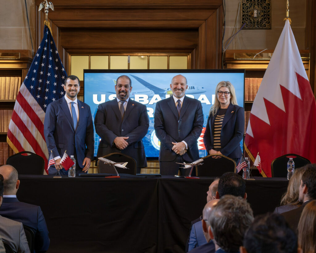 Die nationale Fluggesellschaft Bahrains setzt weiter auf Boeing: Gulf Air will ihre Widebody-Flotte um bis zu 18 weitere Boeing 787 Dreamliner erweitern. Eine entsprechende Absichtserklärung über zwölf feste Bestellungen sowie sechs Optionen wurde am Donnerstag, 17. Juli 2025, in Washington unterzeichnet – im Beisein des bahrainischen Finanzministers Shaikh Salman bin Khalifa Al Khalifa und des US-Handelsministers Howard Lutnick.