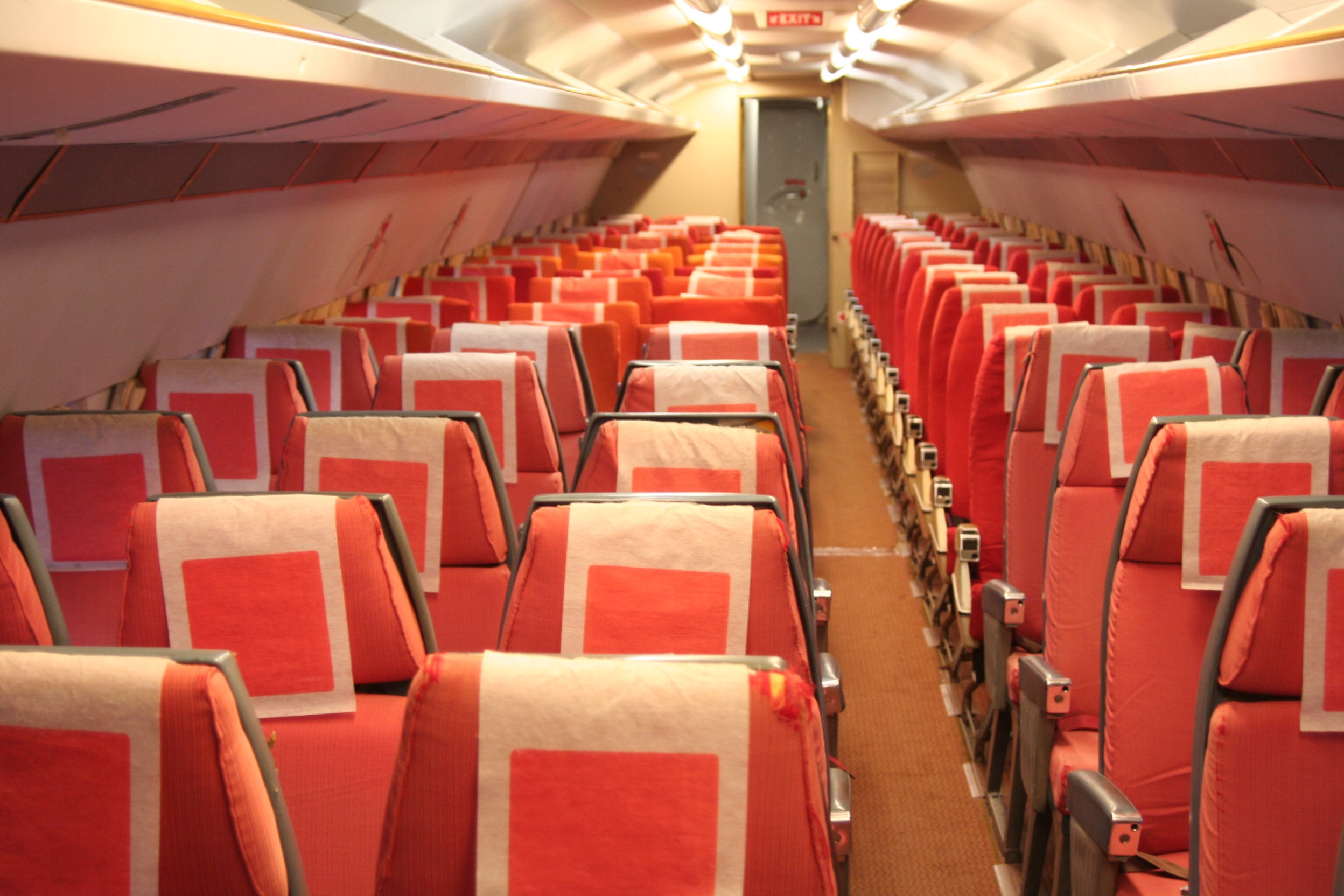 Die Economy-Kabine einer SAS-Caravelle. Sie ist eine „Zeitkapsel“ des Jahres 1974, als dieser Flugzeugtyp bei SAS ausgemustert wurde. Die Caravelle mit dem Taufnamen „Ulf Viking“ befindet sich im Dänischen Technikmuseum „Danish Museum of Science and Technology“ in Helsingör und ist dort zu besichtigen. Bild: Wolfgang Borgmann